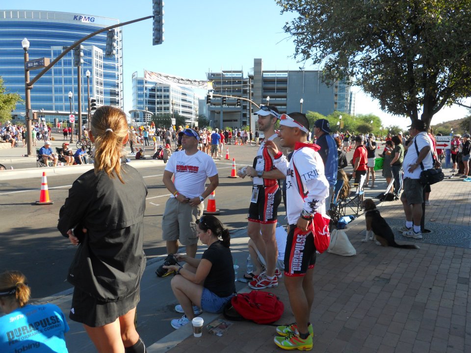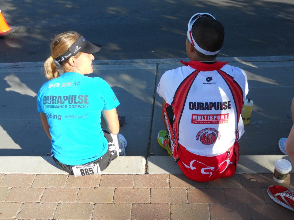 This was my first relay ever… and I had a great time. It’s weird showing up at 6AM and not running for another 4 hours. Many of my teammates were also doing relays so I had many of them to hang out with. We sat on the corner of Mill/Rio Salado and watched the bike race for a couple hours.