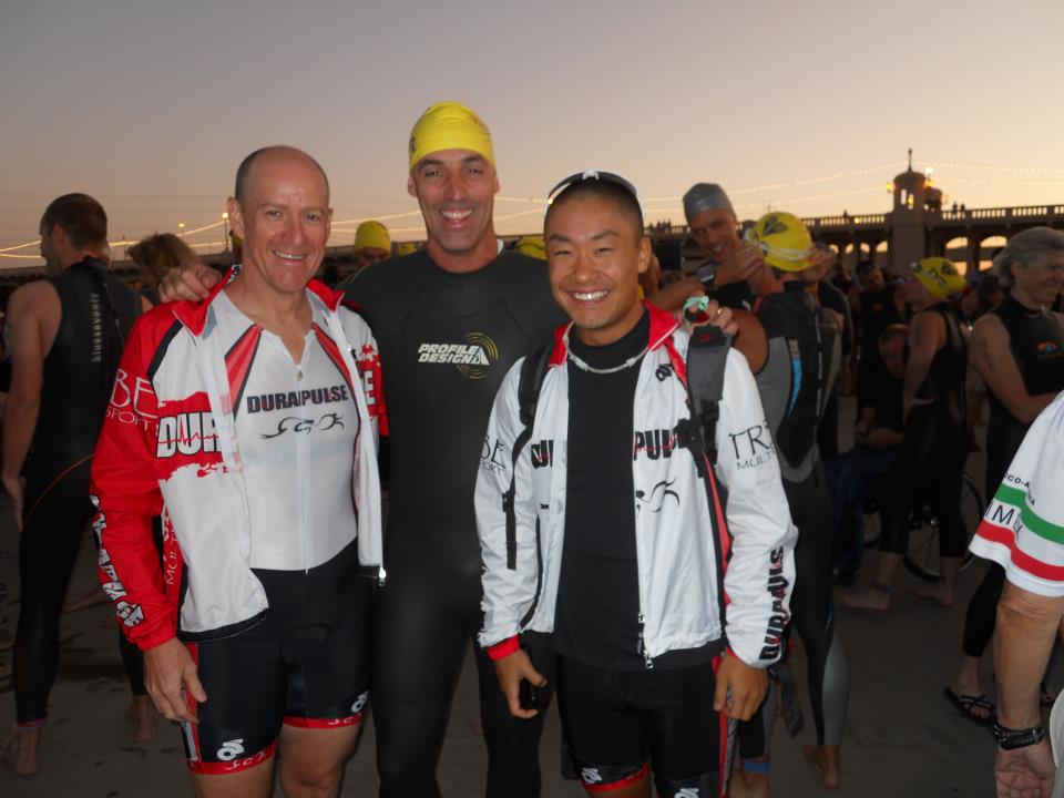 I decided to do the relay. DURAPULSE put on challenge to its relay participants that would award the fastest male and female teams. I knew we’d have a good chance of winning with Sam Perry as our swimmer, and Joe Zitar on Dark Helmet. Our team name: Two Men and a Baby.